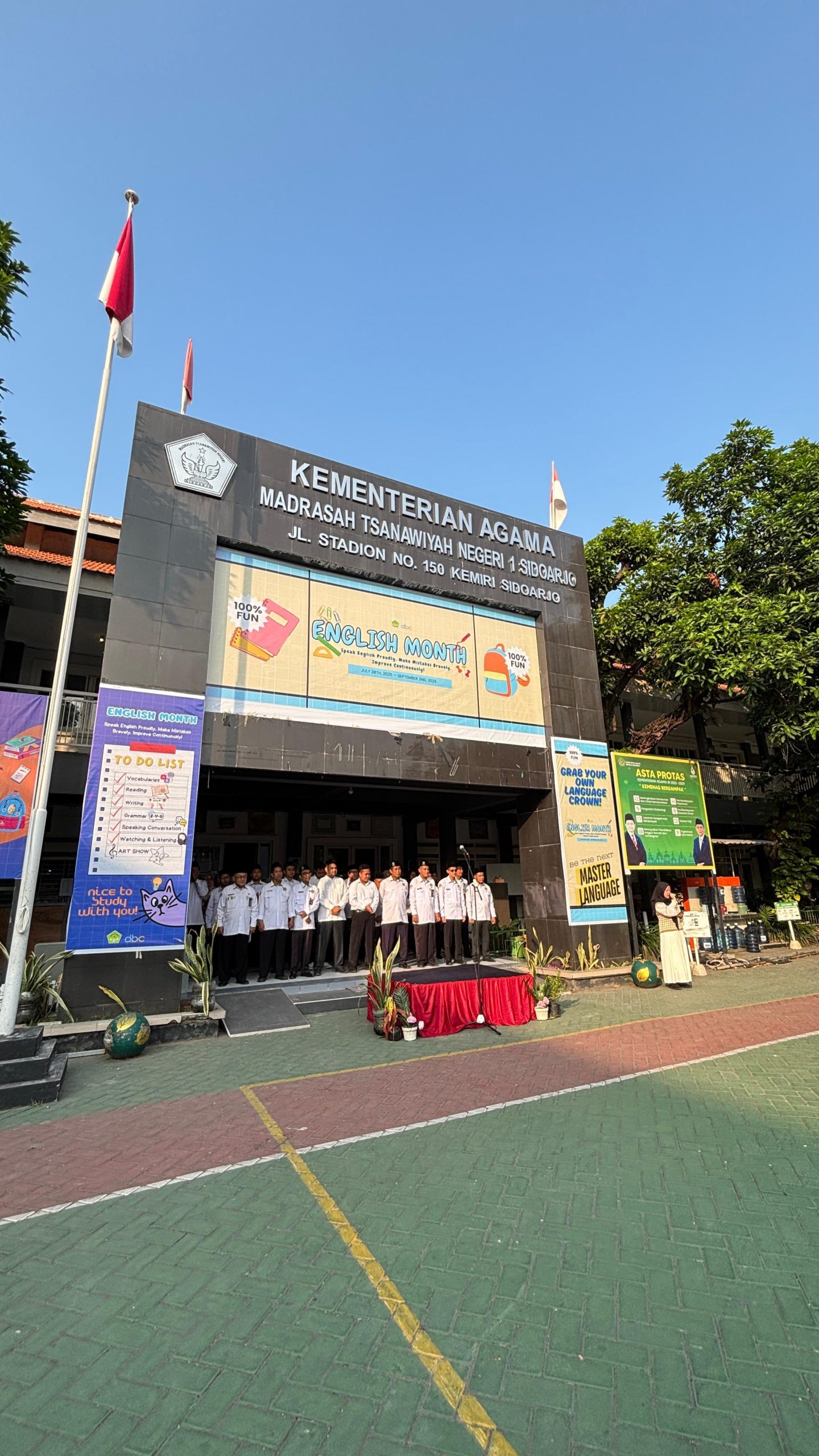 Sidoarjo (28 Juli 2025) — Suasana pagi di halaman MTsN 1 Sidoarjo tampak meriah dan penuh semangat. Pasalnya, hari ini digelar Opening Ceremony English Month 2025, sebuah agenda rutin tahunan yang selalu dinantikan oleh para siswa, khususnya kelas 7. Kegiatan ini menjadi ajang awal bagi para siswa baru untuk menumbuhkan semangat, kreativitas, dan keberanian dalam berbahasa Inggris.