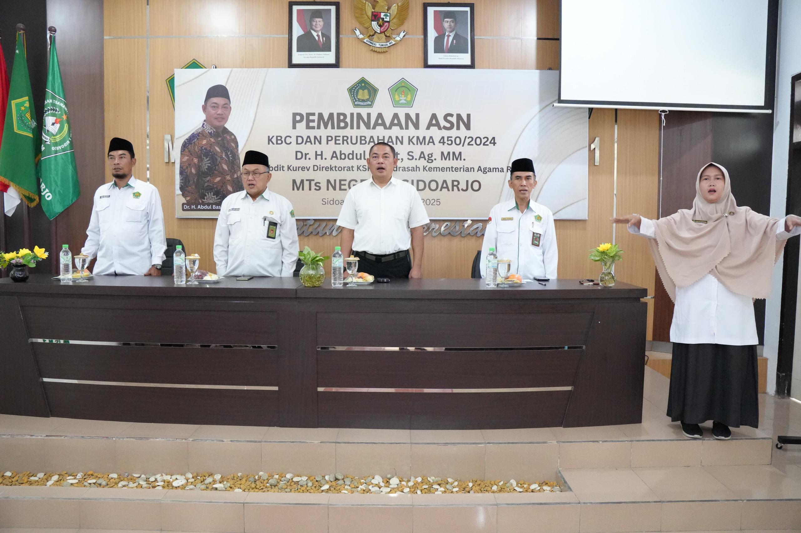 Sidoarjo (22-09-2025) – MTs Negeri 1 Sidoarjo kembali menunjukkan komitmennya dalam meningkatkan kualitas pendidikan dengan menyelenggarakan kegiatan Pembinaan ASN bertema “Kurikulum Berbasis Cinta (KBC) dan Perubahan KMA 450/2024.”